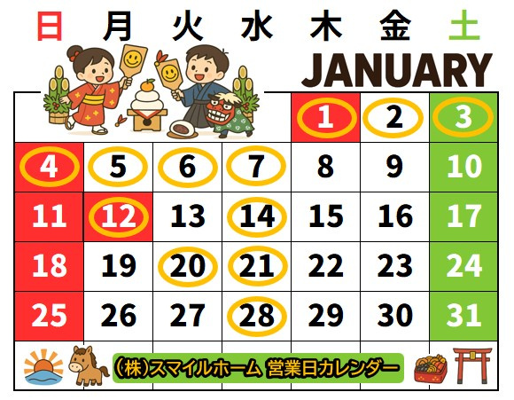 1月営業日カレンダー